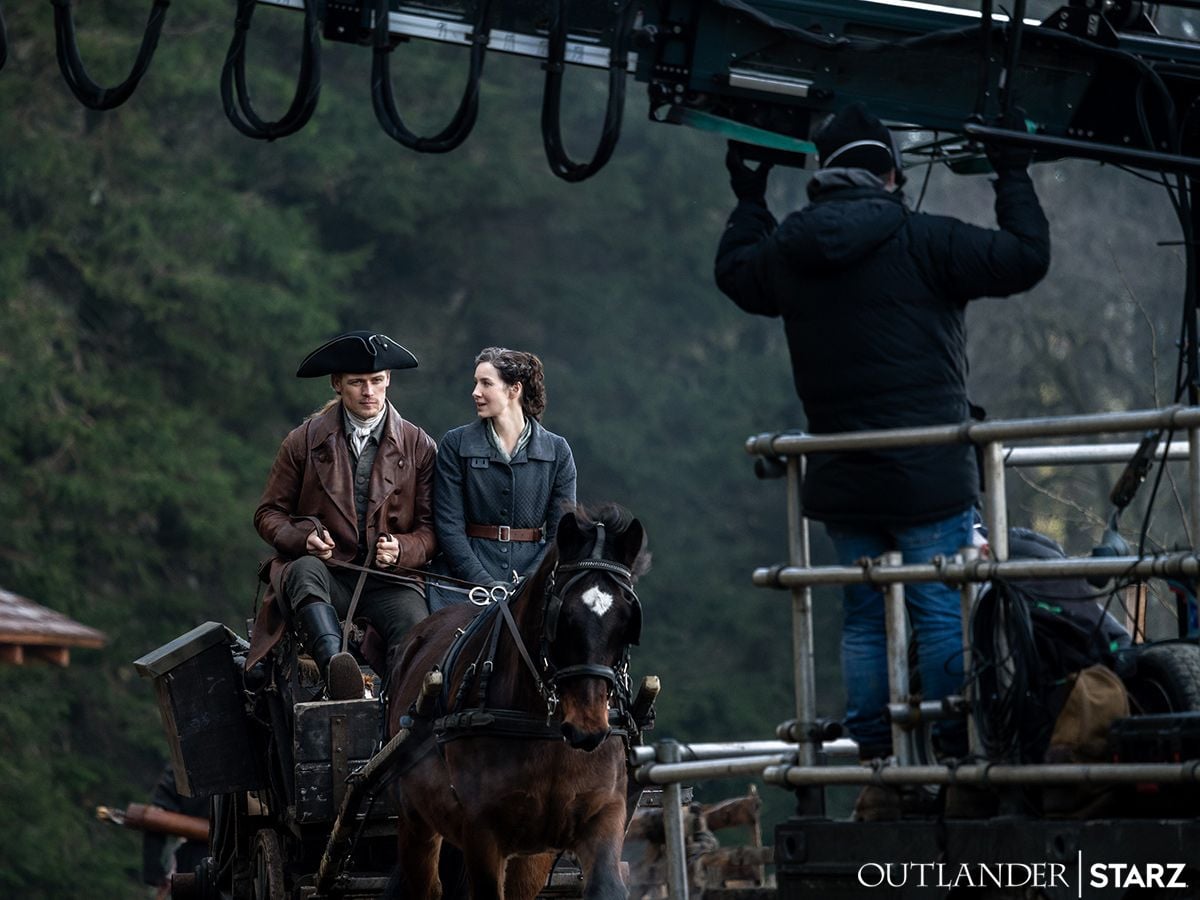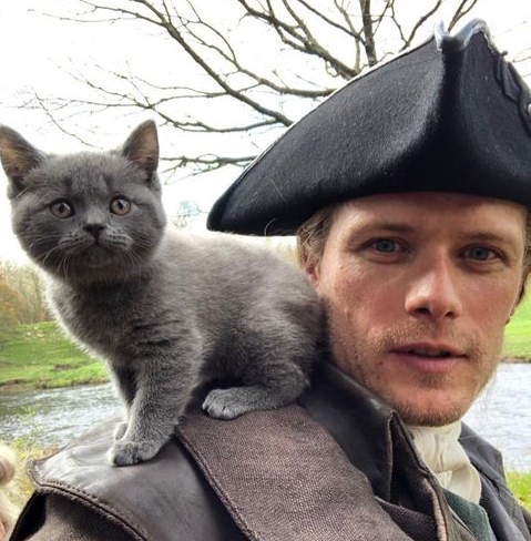 Image at right, Jamie (Sam Heughan) with Adzo, a new Outlander cast member.